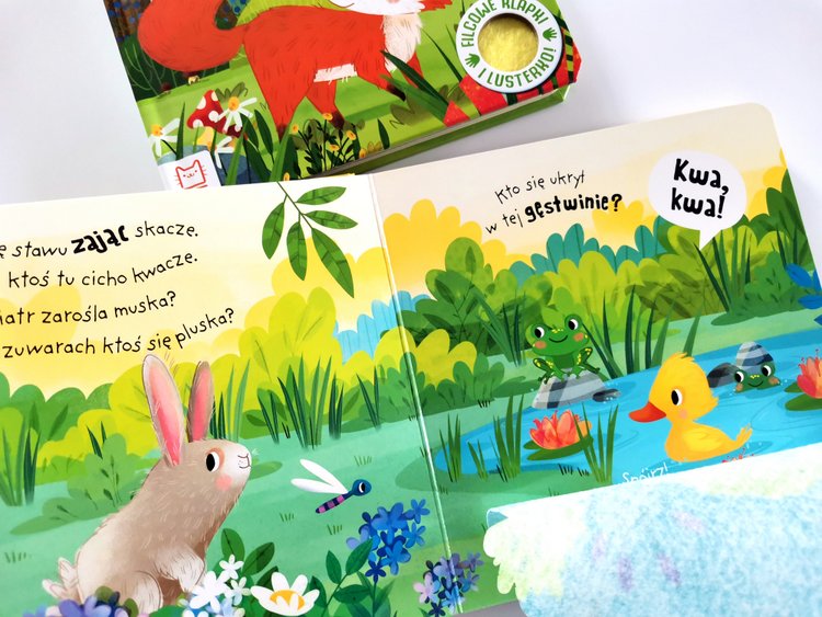 Bawiąc się książeczkami Okruszek będzie szukał uroczych zwierzątek pod filcowymi klapkami. Maluszek będzie przewracać strony, otwierać klapki i zaglądać do kryjówek, aż w końcu na samym końcu odnajdzie samego siebie i przejrzy się w lusterku. ???