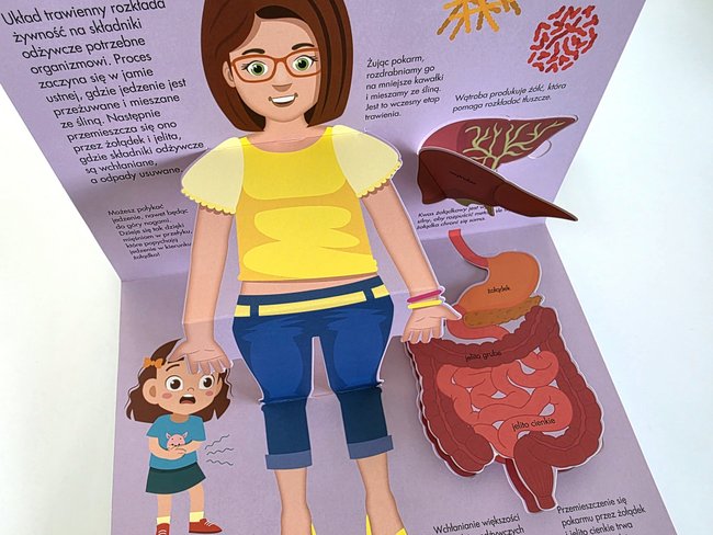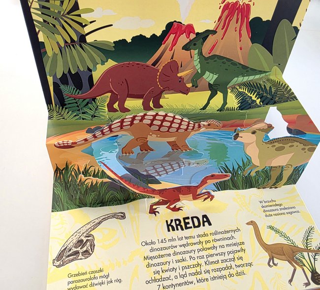W środku książeczek znajdziemy przepięknie ilustrowane strony pop-up z dinozaurami oraz ciałem człowieka. W książce „Ludzkie ciało” znajdziemy również wiele okienek do otwierania. 😍😍😍
