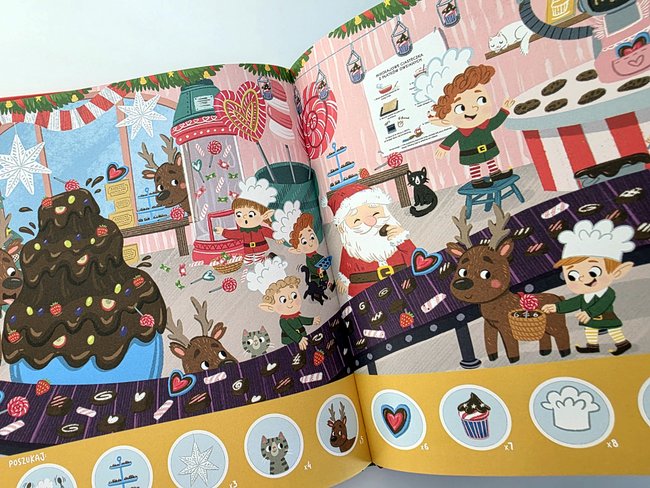 To bardzo fajna książeczka – wyszukiwanka idealna dla przedszkolaków, a zarazem niezastąpiona pomoc w kształtowaniu spostrzegawczości. Dzięki niej możemy się przenieść do cudownego świata bajek. Ponadto w książce znajdziemy wiele świątecznych ciekawostek. 😍😍😍