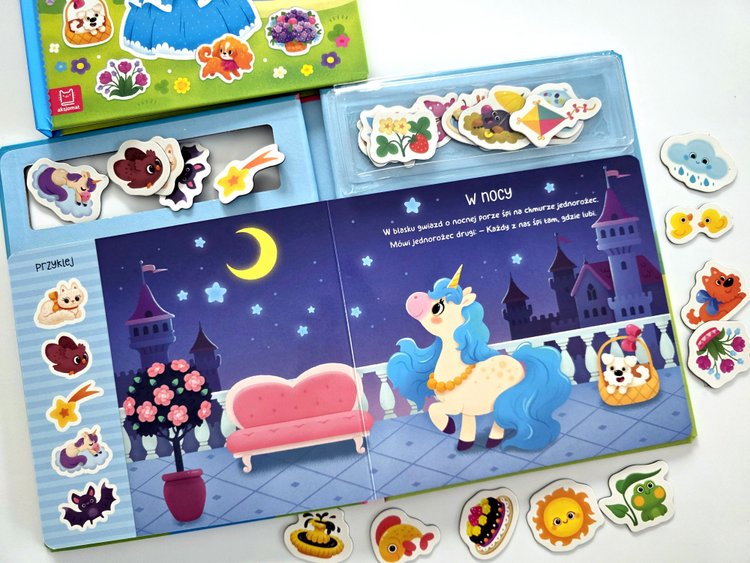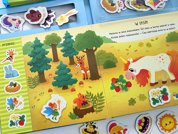 W środku książeczek znajdziemy piękne ilustracje, przyjemne dla ucha rymowanki oraz 25 magnesów, którymi dzieci będą uzupełniać barwne scenki. Maluchy będą tworzyć własne, niepowtarzalne historie. To taka fajna i niekończąca się zabawa! 😍😍😍