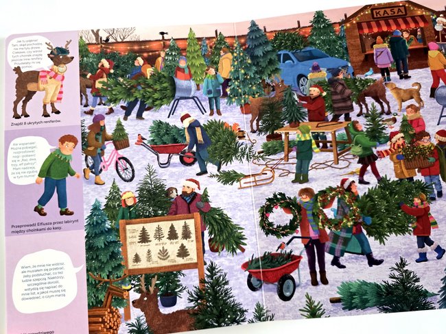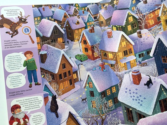 To bardzo fajna książeczka – wyszukiwanka idealna dla przedszkolaków, a zarazem niezastąpiona pomoc w kształtowaniu spostrzegawczości. Dzięki niej możemy się przenieść do cudownego świata bajek. Ponadto w książce znajdziemy również wiele świątecznych łamigłówek. 😍😍😍