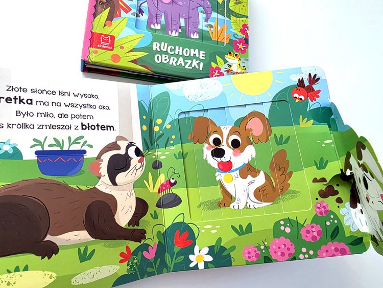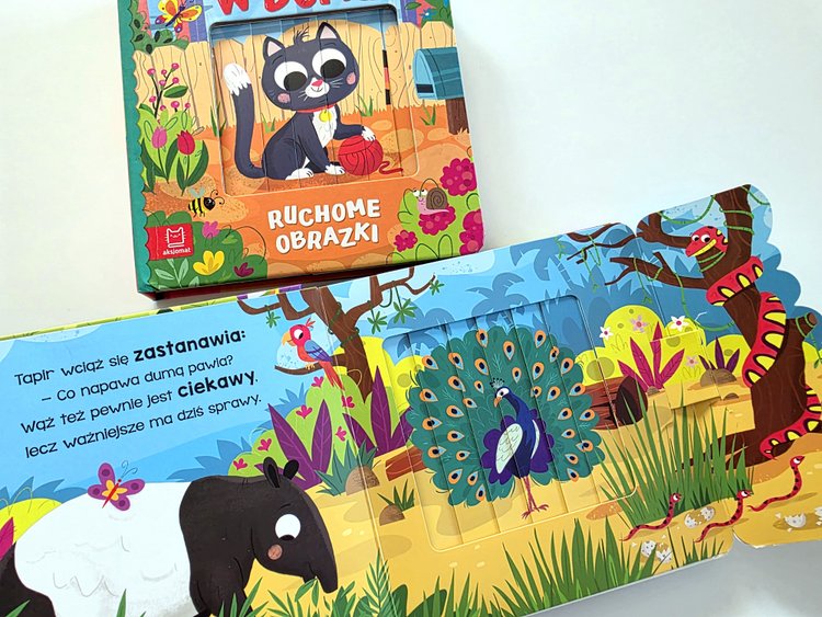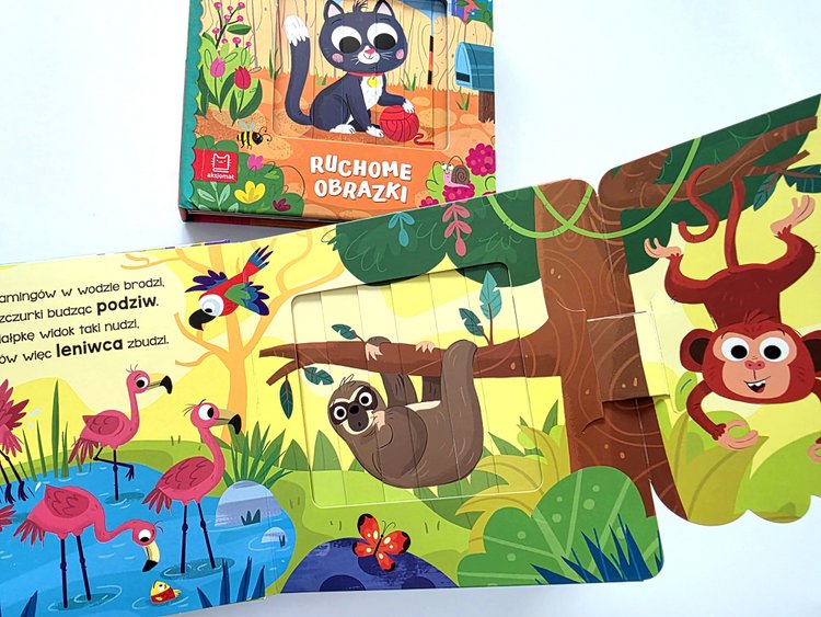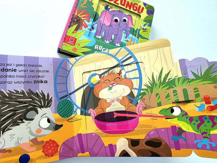 Za pomocą prostego mechanizmu maluch ożywi zwierzątka, które można spotkać w dżungli i w domu. Wystarczy tylko otworzyć okładkę lub zakładkę, a wtedy obrazek zmieni się w inny. 🤩🤩🤩