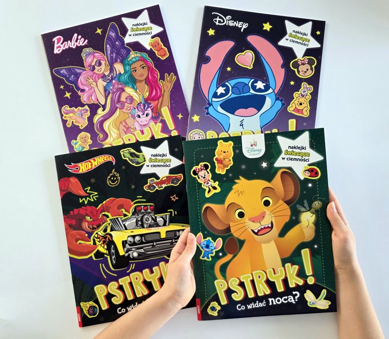 ŁAMIGŁÓWKI to quizy i różne łamigłówki z naklejkami, m. in.: labirynty, dopisywanie brakujących liter, łączenie cyfrowych kropek, rysowanie, kolorowanie obrazka według numerów, znajdywanie różnic, wybieranie identycznych rysunków, rozpoznawanie kształtów, łączenie przedmiotów z ich cieniami oraz odnajdywanie wyrazów w literowej rozsypance, itp. oraz książki z zagadkami dla dzieci w formie pytań i rymowanych wierszyków.